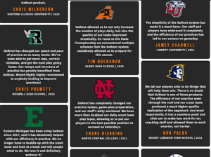 “GoRout has been a game changer for us in our practice efficiency. Our repetitions are faster and more precise. Our student-athletes can instantly focus on the rep at hand.”